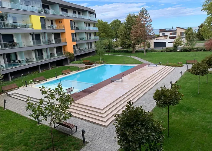 Relax Apartman シオーフォクはOriaskerek Siofokから2キロメートルの距離で、シオフォク ウォーター タワーから徒歩で約15分の場所にあります。 アパートにはプールと湖の景色を見渡せるテラスが備わります。